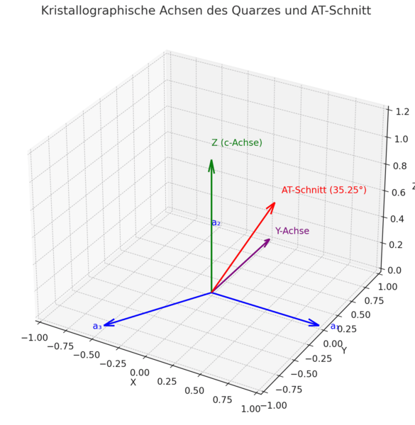 La sezione AT è una sezione inclinata (circa 35,25°) rispetto all'asse Z, nel piano X-Z. Viene utilizzata per produrre cristalli oscillanti stabili in temperatura. L'oscillazione avviene nel piano della lastra (modalità planare).