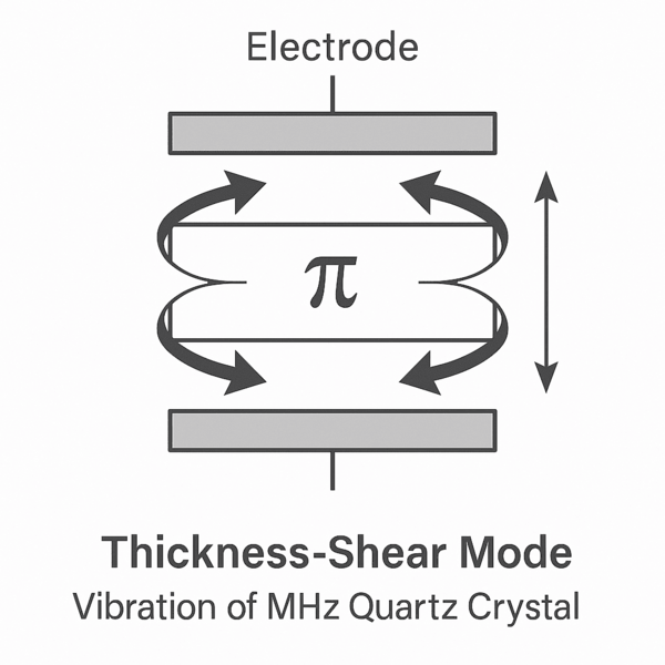 Per i cristalli oscillanti MHz si utilizza la cosiddetta "oscillazione fondamentale" (oscillazione fondamentale) o un'armonica (di solito la terza o la quinta armonica). Il fattore decisivo è il modo meccanico di vibrazione del cristallo di quarzo, che si basa sull'effetto piezoelettrico del quarzo. Nella gamma dei MHz, la modalità fondamentale (disponibile presso PETERMANN-TECHNIK GmbH fino a 285 MHz) è tipicamente utilizzata nella modalità ditaglio dello spessore.