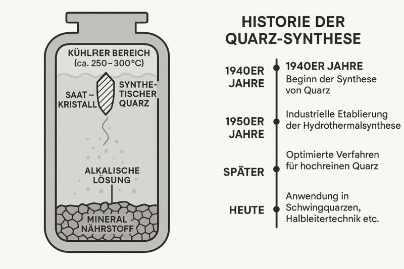 - Negli anni '40 è iniziata la sintesi del quarzo nei cosiddetti impianti idrotermali, un processo che imita le condizioni di crescita naturali.